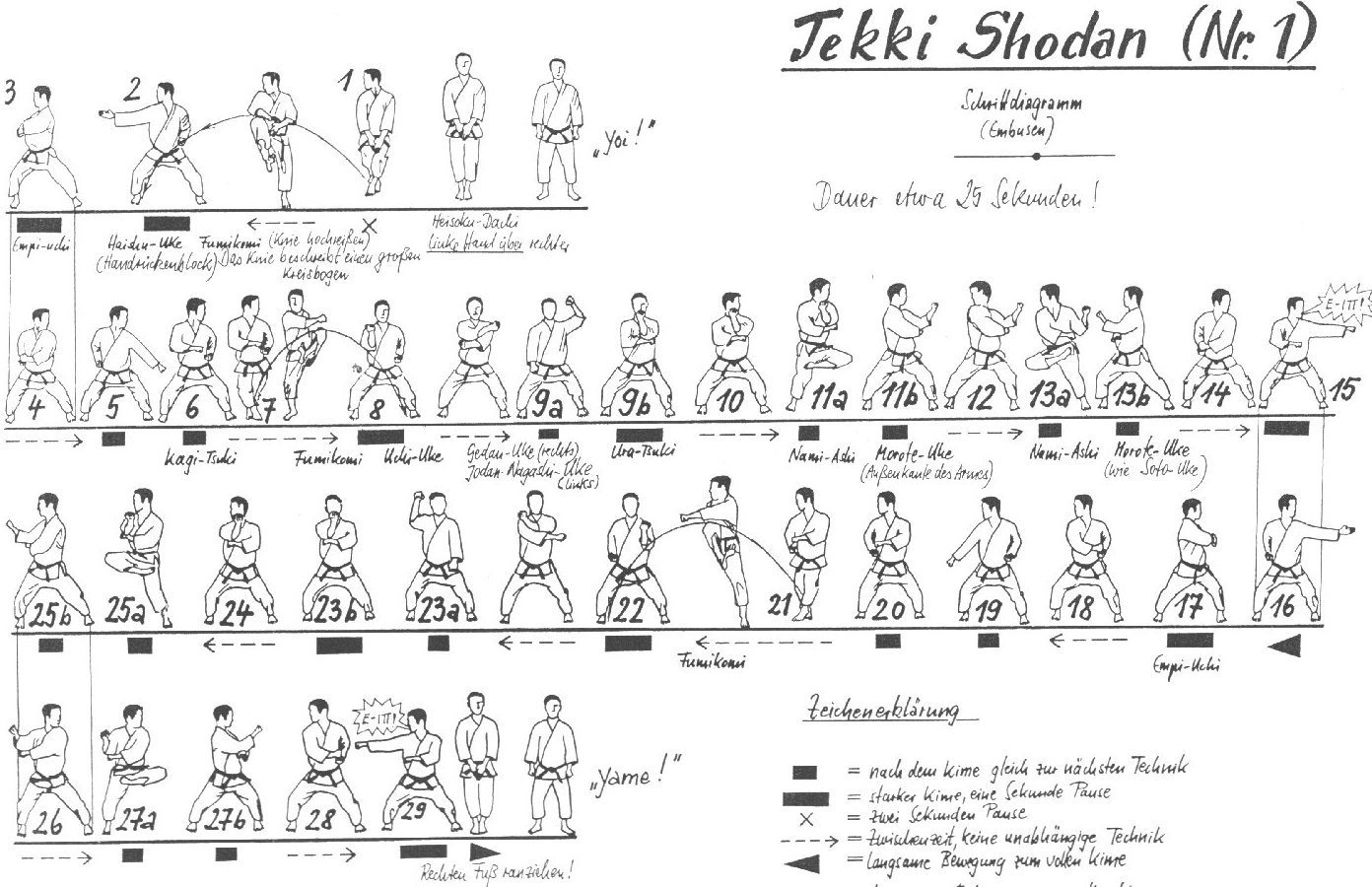 | Juji Uke | X block | Nidan Geri | Two-level kick |